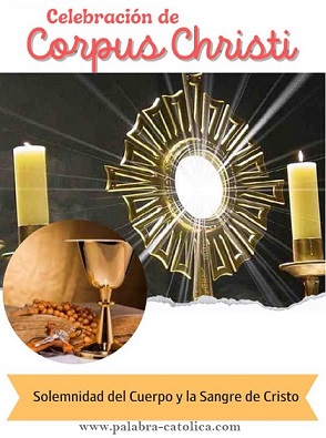 Solemnidad del Santísimo Cuerpo y Sangre de Cristo, esta celebración honra a Jesucristo, verdadera y realmente presente substancialmente bajo las apariencias del pan y del vino. Esa Presencia ocurre gracias a un cambio que la Iglesia llama transubstanciación, en el momento en que el sacerdote, durante la Consagración en la Misa, dice las palabras que el mismo Cristo pronunció sobre el pan y el vino: “Este es Mi Cuerpo”, “Esta es Mi Sangre”, “Hagan esto en memoria Mía”.